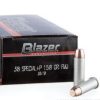 This target ammunition from Remington’s UMC division is a reliable, cost-effective way to train with your revolver. Each cartridge in this box of 50 fires a heavy 158 grain lead round nose bullet at a muzzle velocity 755 feet per second, producing low recoil and great accuracy at typical pistol shooting distances.